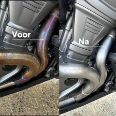 De RVS uitlaatreiniger is zoals je verwacht geschikt voor RVS. Helaas niet voor chroom aangezien chroom een te zacht materiaal is. Stuur bij twijfel een berichtje via Facebook/Instagram of stuur ons een mail via info@handigschoonnmaken.nl