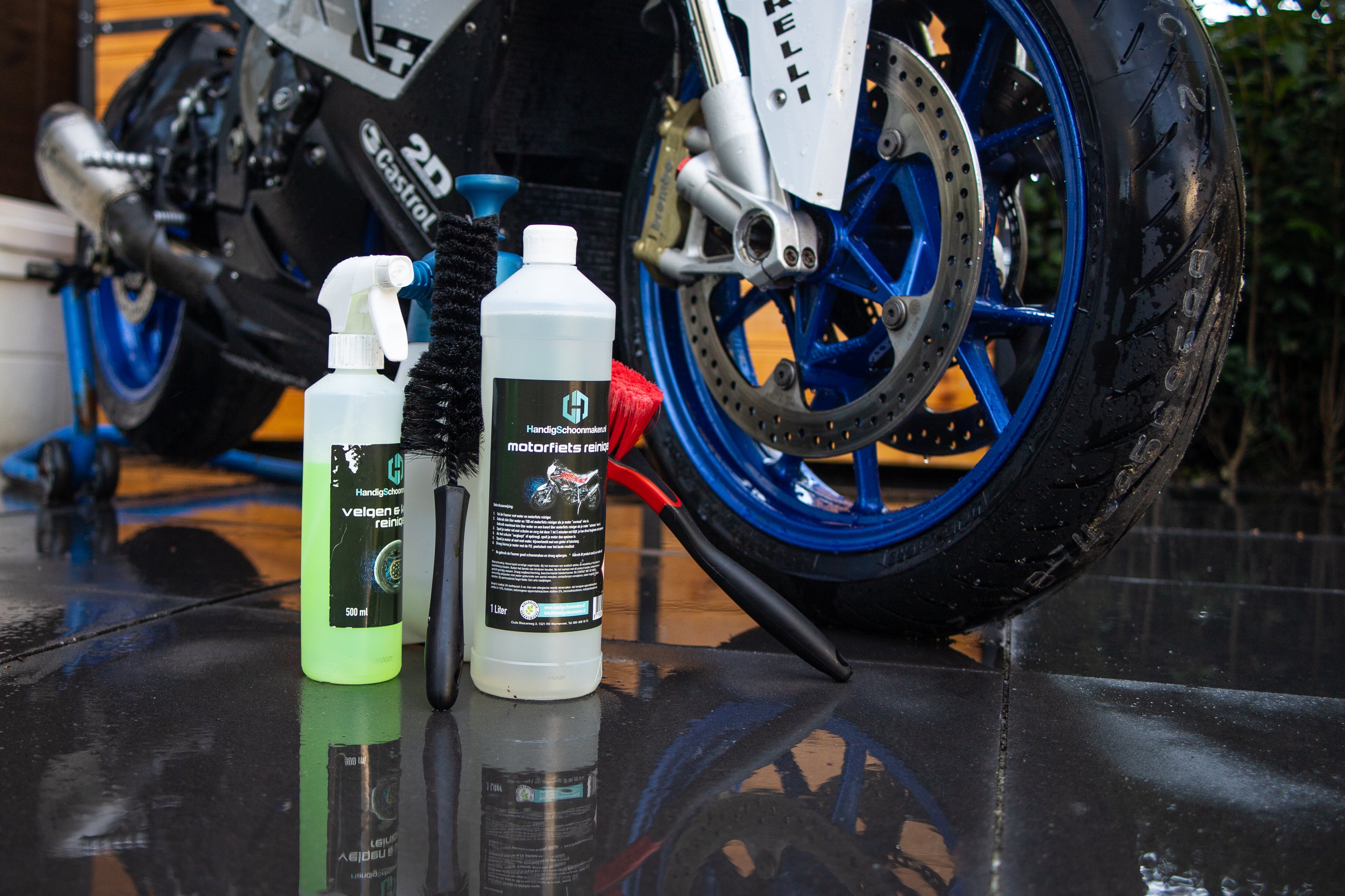 In onze webshop breid je deze set snel uit met alles wat je nodig hebt. Bekijk bijvoorbeeld de kettingborstel, wasborstel, velgenborstel of de reinigingsset voor je vizier.